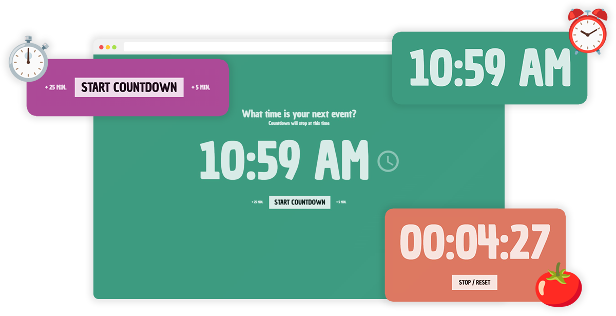 Set a time you want the countdown to end, either by entering the custom time, it could be the time of when you next calendar event is, or you can use a pre-defined pomodoro timer. When using the pomodoro timer, you simply need to press on +25 min. for a focused work session, and +5 min. for a relaxing work break. Then, simply press Start.
